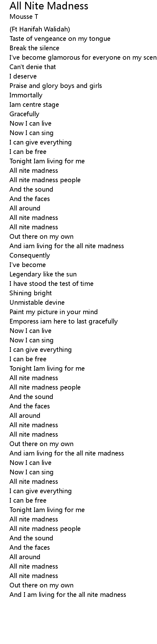 And iam living for the all nite madness |