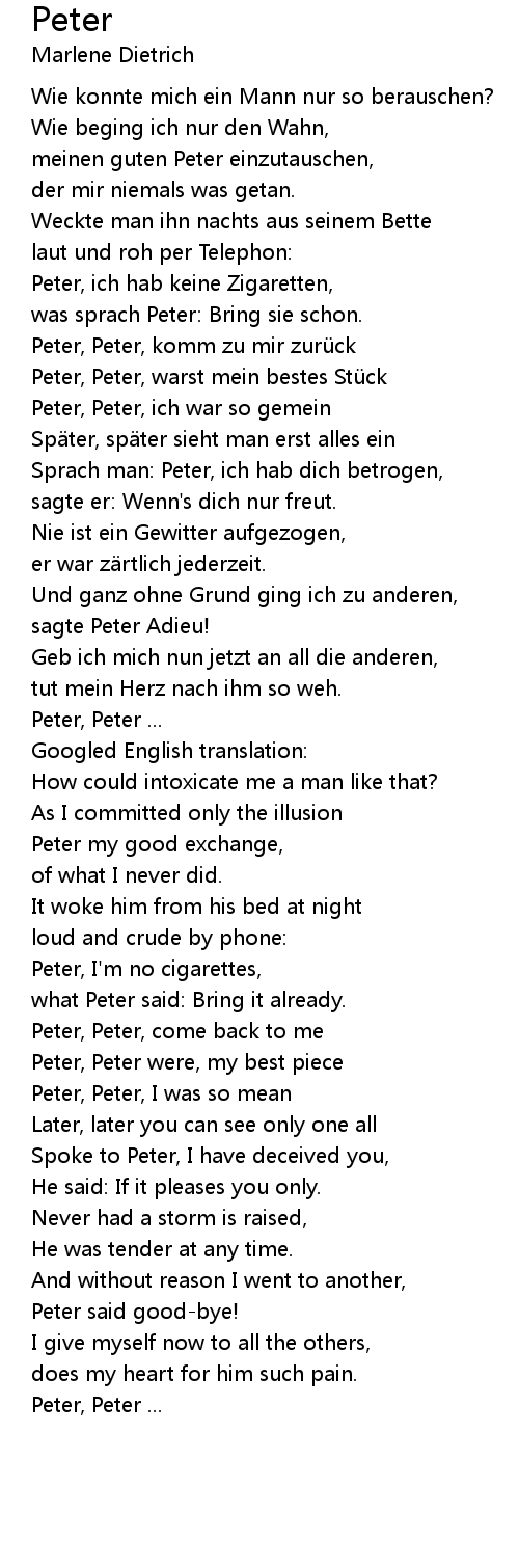 | Sprach man: Peter, ich hab dich betrogen, | |