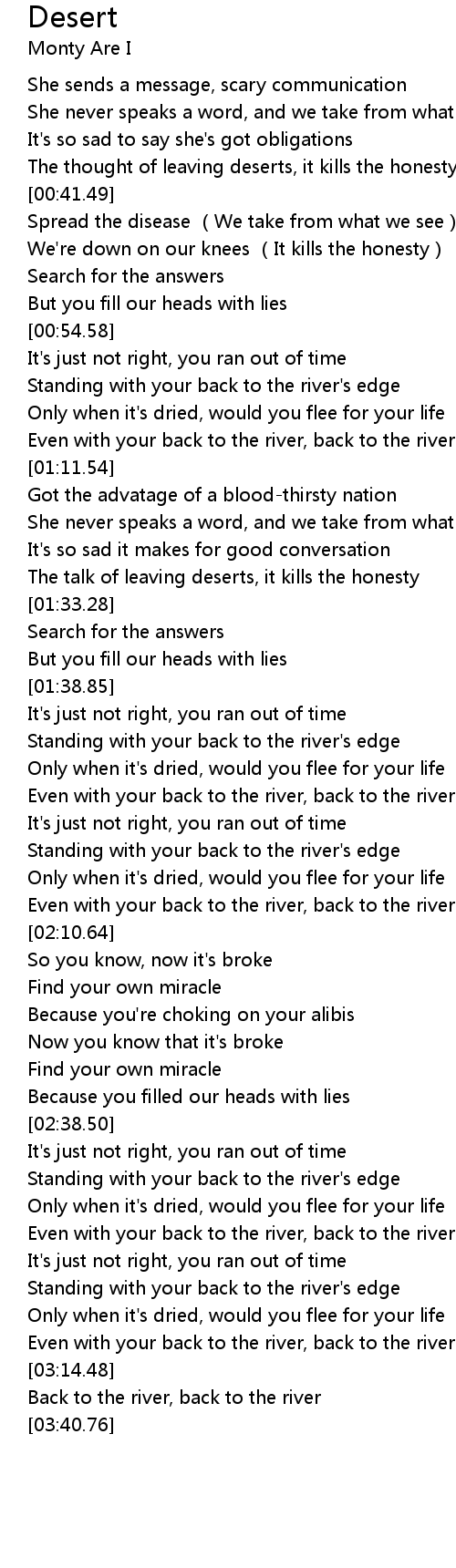 | [00:37.58] | The thought of leaving deserts, it kills the honesty |