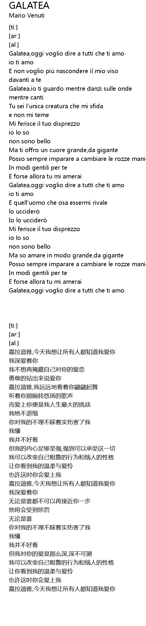 | [00:00.34] | Galatea, oggi voglio dire a tutti che ti amo |
