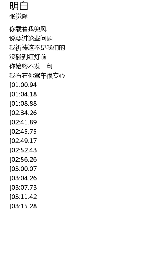 | [03:30.40][02:45.75][01:27.63] | wo bi xu yao ming bai |