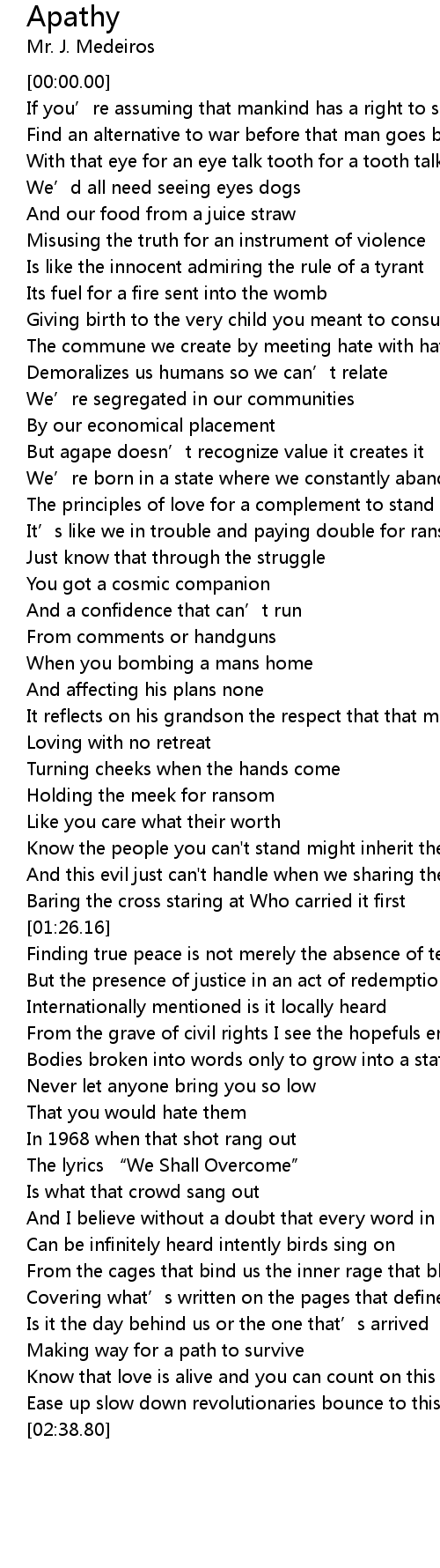 | [02:13.12] | The lyrics “We Shall Overcome” |