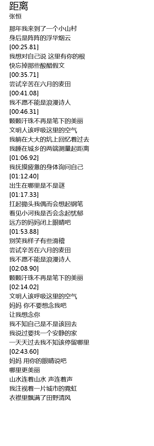 | [01:02.25] | 我睡在城乡的两端测量起距离 |