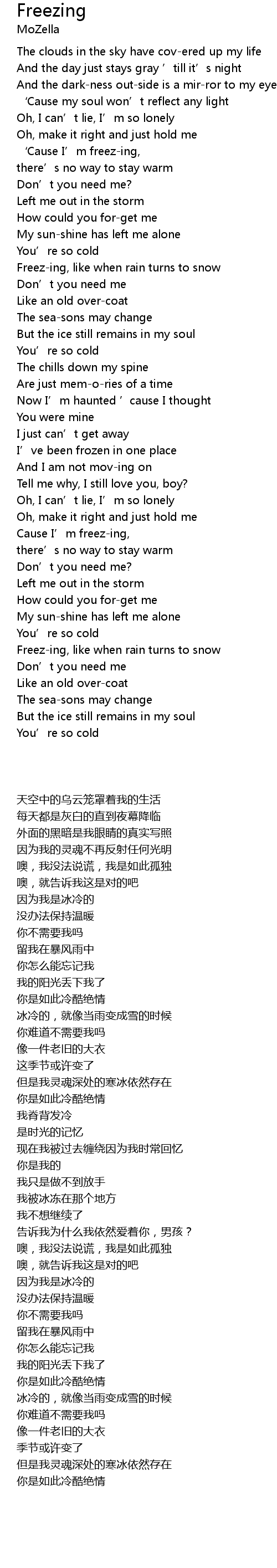 | [02:09.900] | Freezing, like when rain turns to snow |