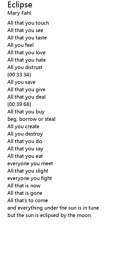 | [01:19.85] | but the sun is eclipsed by the moon. |