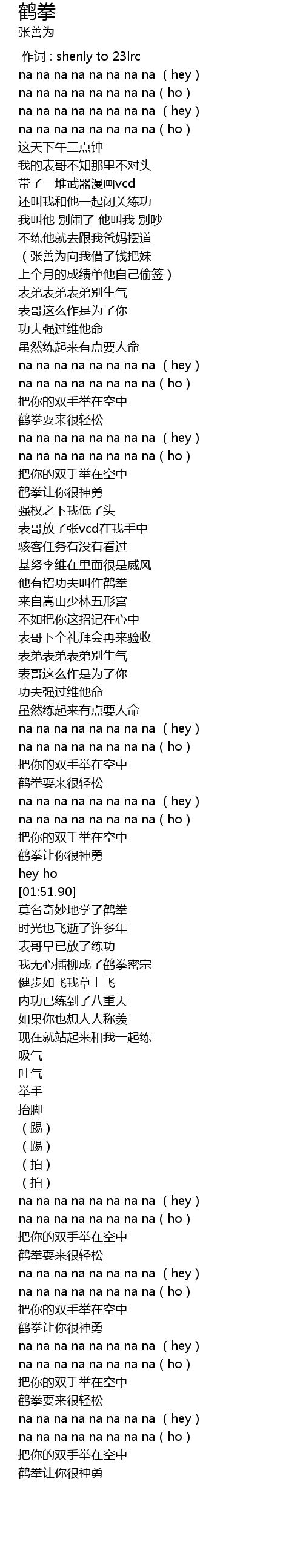 | [01:45.09] | 鹤拳让你很神勇 |