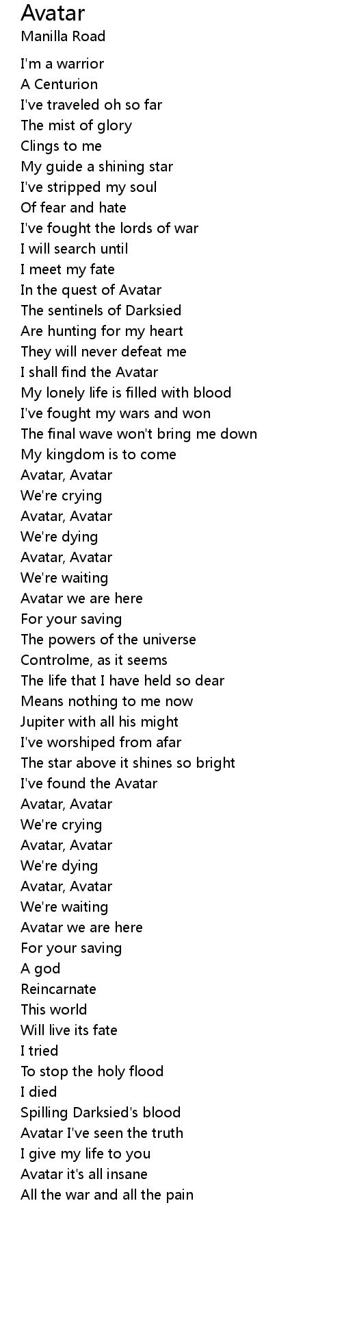 Avatar 歌词