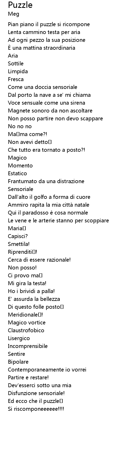 | Pian piano il puzzle si ricompone | |