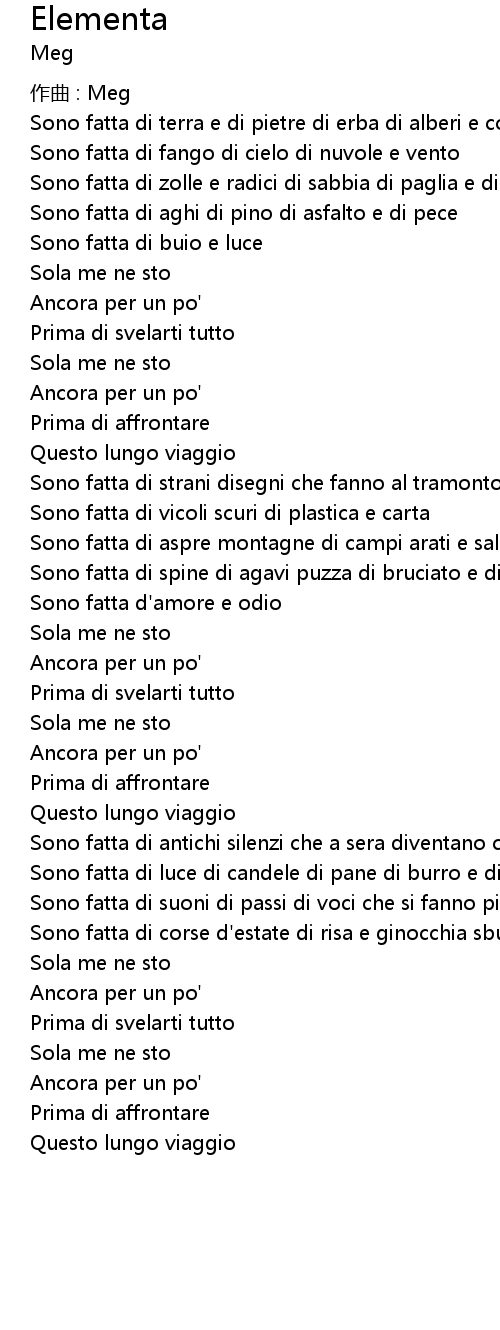 | Sono fatta di terra e di pietre di erba di alberi e corsi d' acqua | |