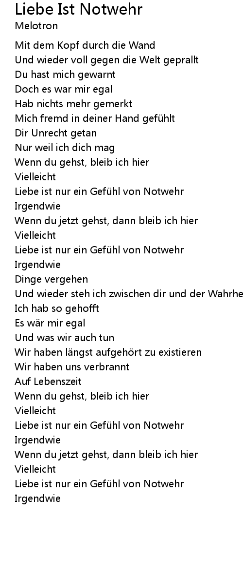 | Liebe ist nur ein Gefühl von Notwehr | |