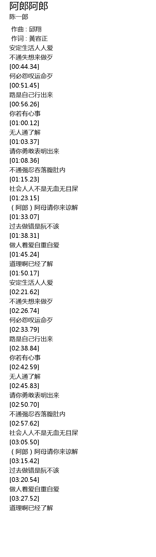 | [03:22.34] | 做人着爱自重自爱 |