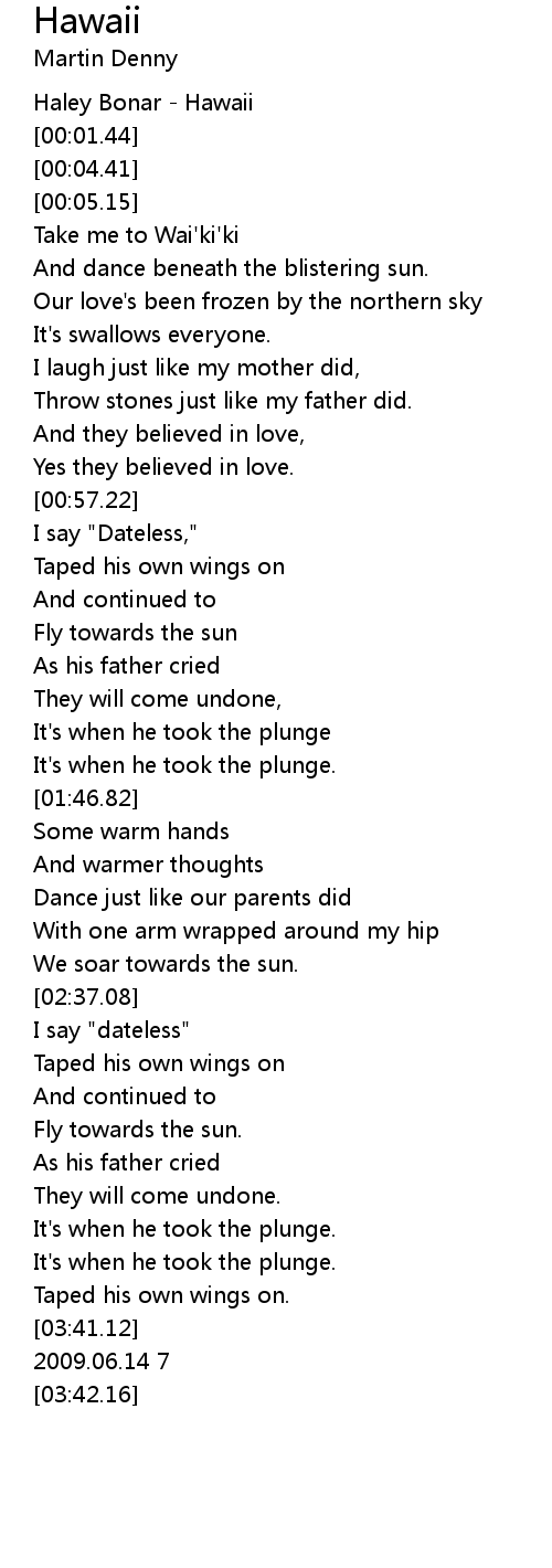 Hawaii 歌词