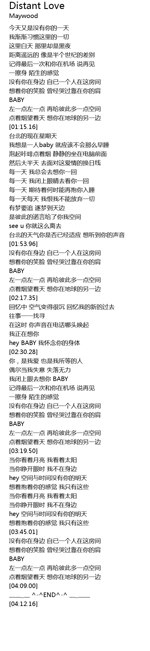 | [00:30.01] | 距离遥远的 像是半个世纪的差别 |