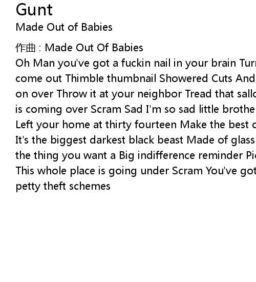 | Oh Man you' ve got a fuckin nail in your brain Turn it left until the fleas can come out Thimble thumbnail Showered Cuts And rip the power out And bring it all on over Throw it at your neighbor Tread that sallow shallow water The whole town is coming over Scram Sad I' m so sad little brother The whole bin is in It' s over Left your home at thirty fourteen Make the best of petty theft schemes Scram It' s the biggest darkest black beast Made of glass and full of thunder I can be the thing you want a Big indifference reminder Pick it out and Run for cover This whole place is going under Scram You' ve got to fake it Make the best of petty theft schemes |