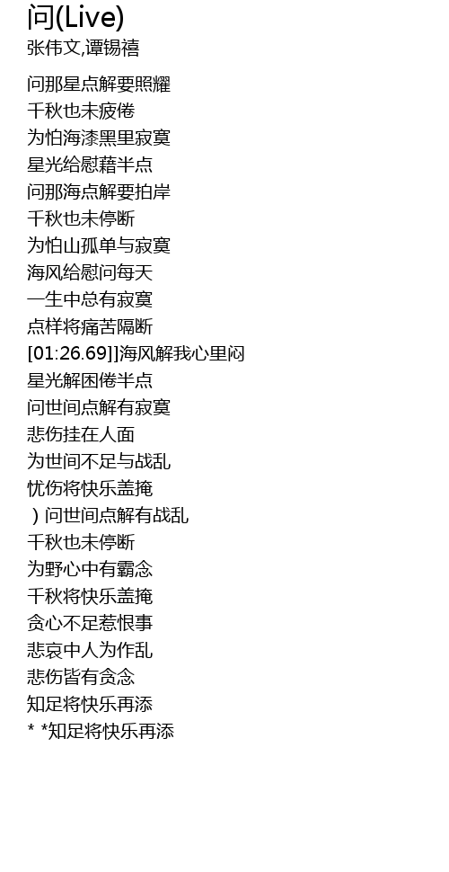 | [03:14.36] | * *知足将快乐再添 |