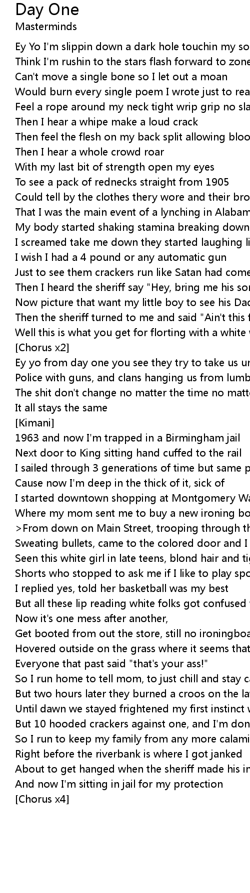 Ey yo from day one you see they try to take us under |