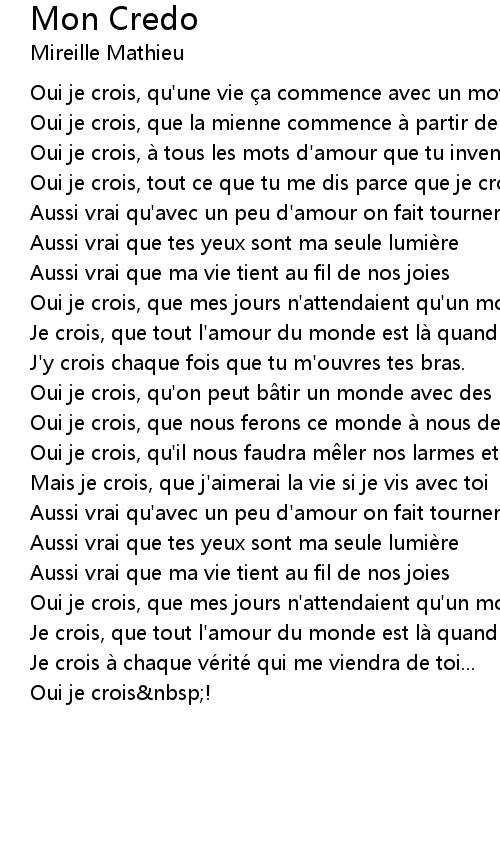 | 歌曲 | Mon Credo |