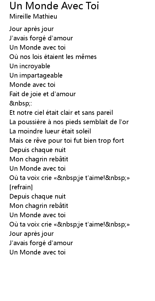 | Où ta voix crie nbsp je t' aime! nbsp | |