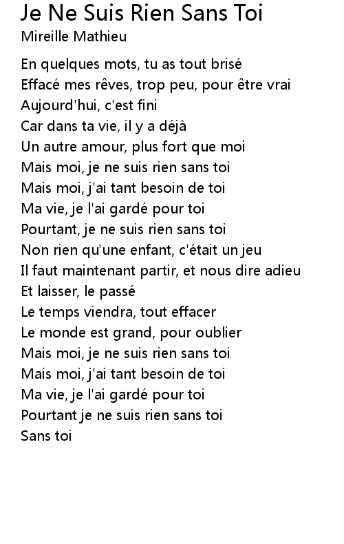 | 歌曲 | Je Ne Suis Rien Sans Toi |