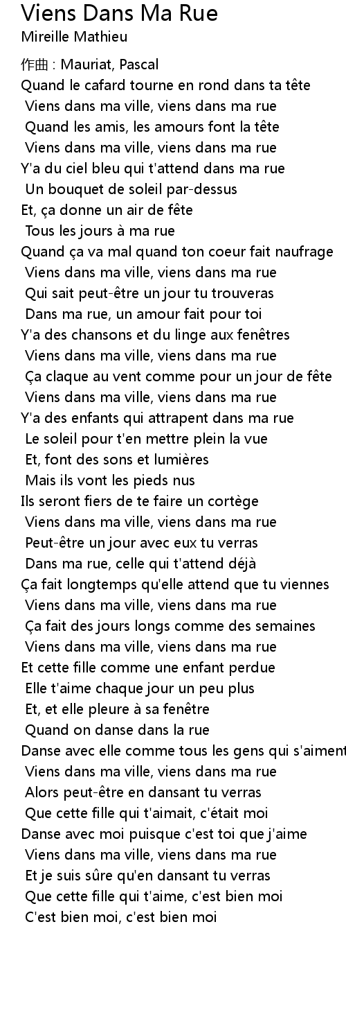 | 歌曲 | Viens Dans Ma Rue |