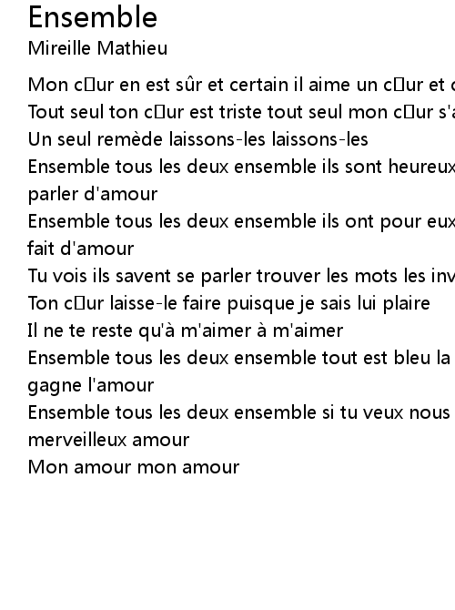 | Ensemble tous les deux ensemble si tu veux nous vivrons tous les deux un merveilleux amour | |