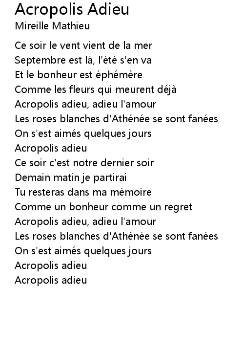| Acropolis adieu, adieu l' amour | |