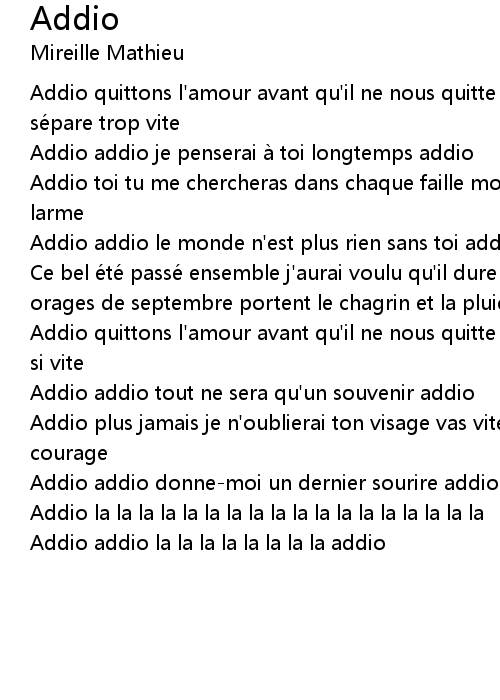| Addio addio tout ne sera qu' un souvenir addio | |