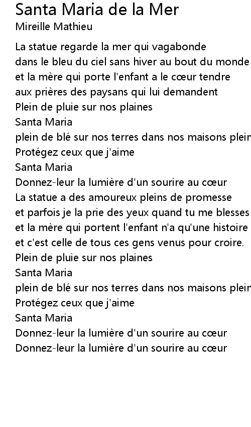 | 歌曲 | Santa Maria de la Mer |