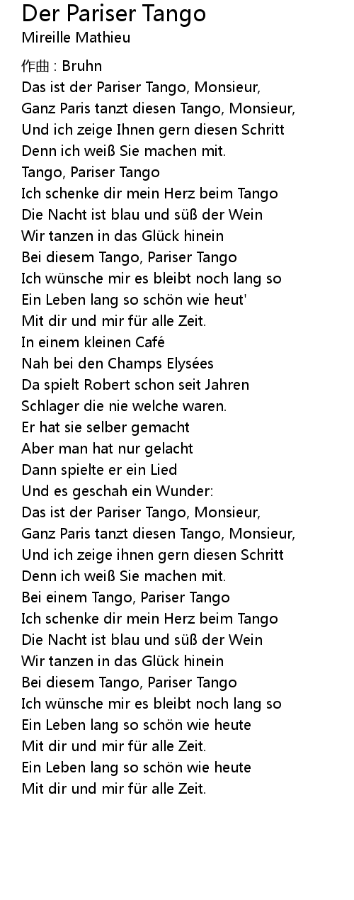 | 歌曲 | Der Pariser Tango |