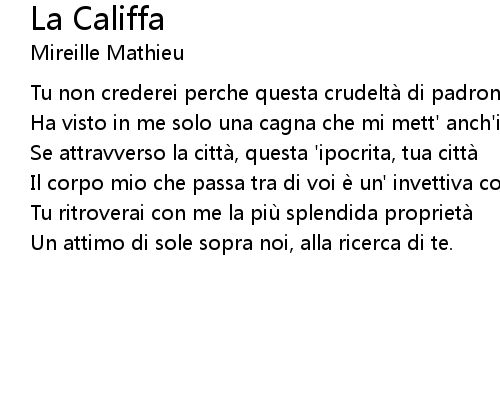 | Ha visto in me solo una cagna che mi mett' anch' io alla tua cattena | |