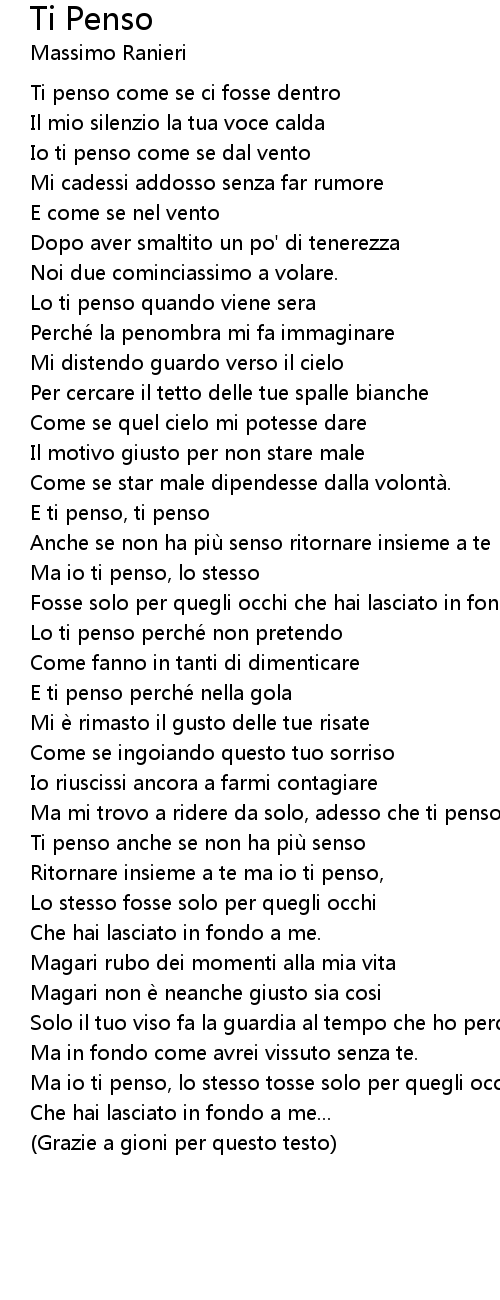 | Ritornare insieme a te ma io ti penso, | |