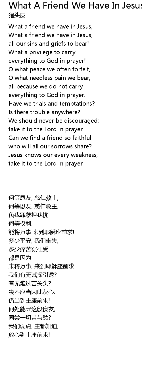 What a friend we have in Jesus, |