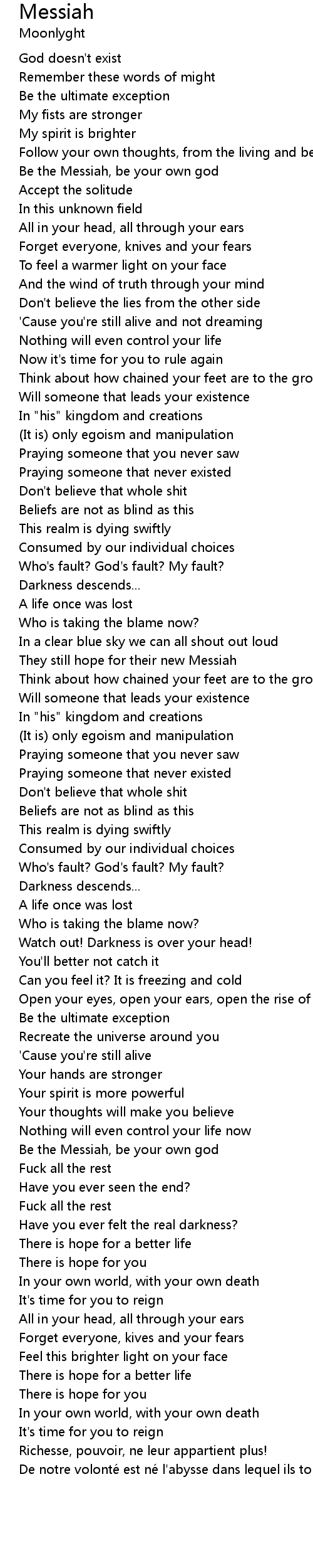 | Be the Messiah, be your own god | |