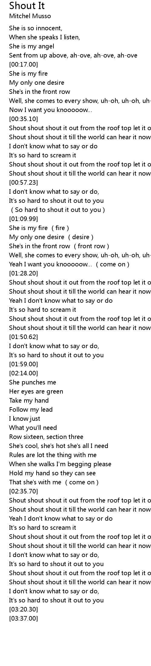 | [00:50.29] | Shout shout shout it out from the roof top let it out |
