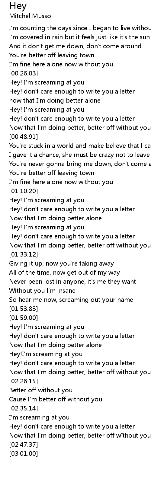 | [02:27.42] | Better off without you |