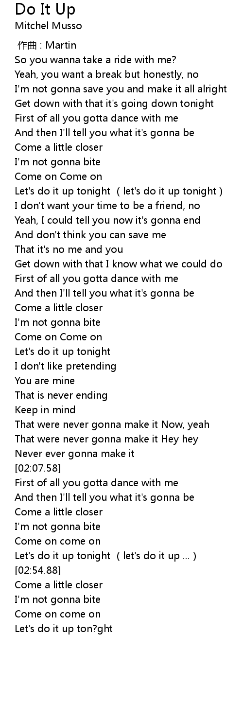 | [02:44.40] | Let' s do it up tonight let' s do it up ... |
