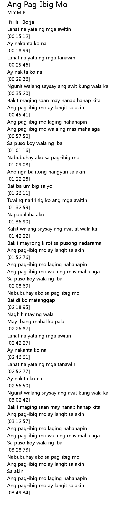 | [03:34.58] | Ang pagibig mo ay langit sa akin |