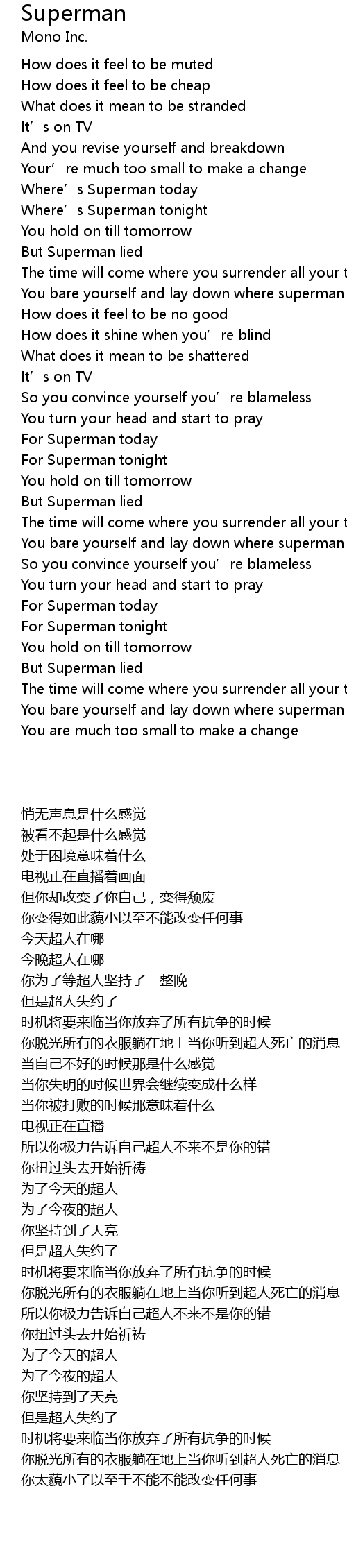 | [02:28] | You bare yourself and lay down where superman died |