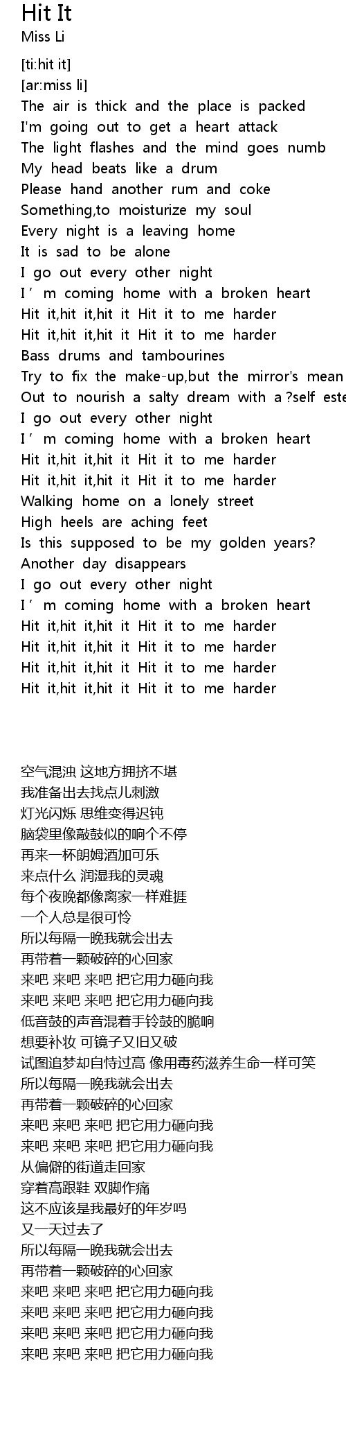 | [02:35.63] | Hit it,hit it,hit it Hit it to me harder |