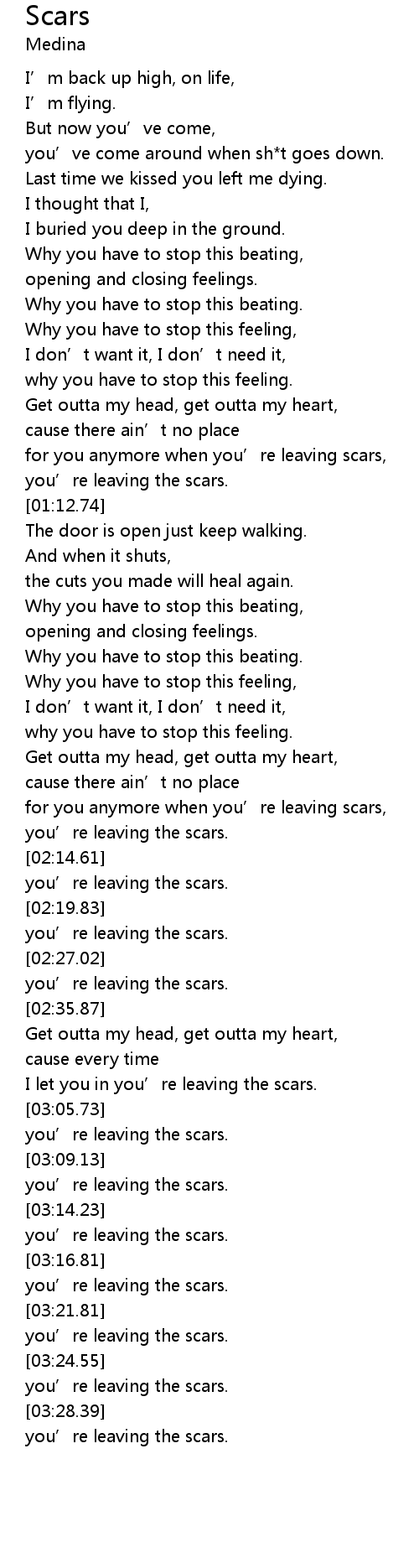 | [03:22.79] | you' re leaving the scars. |