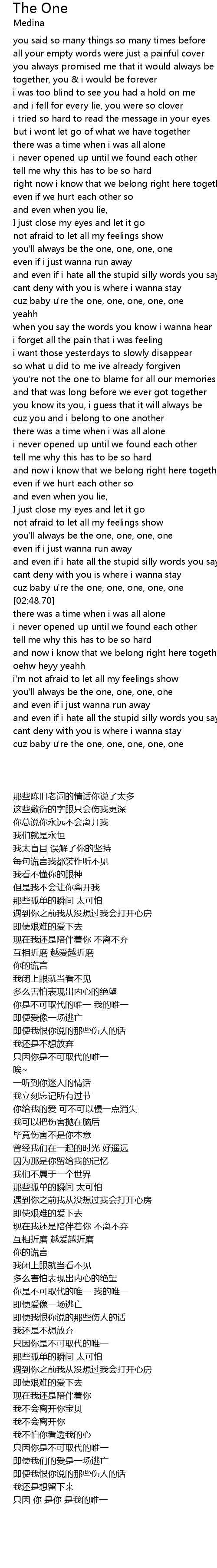 The One 歌词