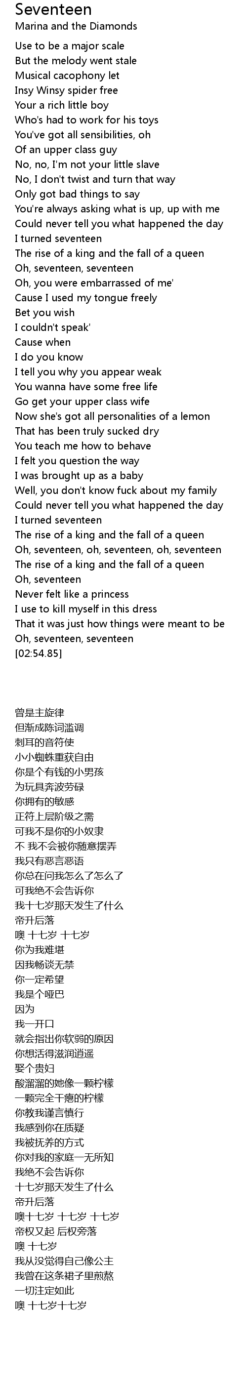 Oh, seventeen, oh, seventeen, oh, seventeen |