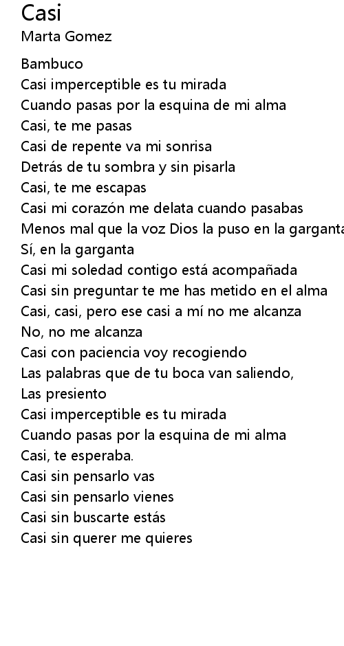 | Casi, casi, pero ese casi a mi no me alcanza | |