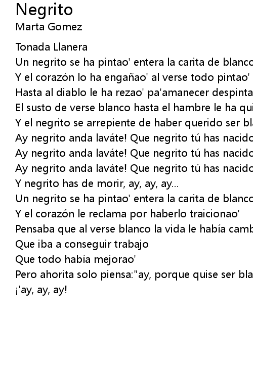 | Y el negrito se arrepiente de haber querido ser blanco ay, ay,ay. | |