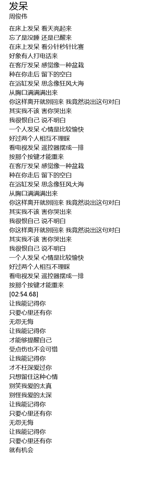 | [02:44.59] | 看电视发呆 遥控器摆成一排 |