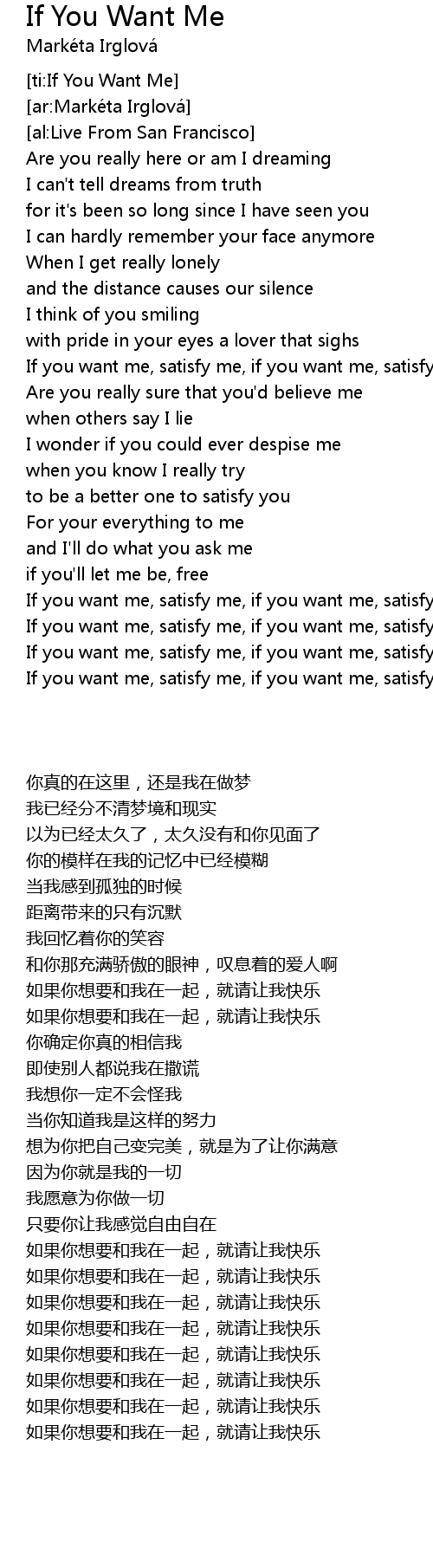 | [03:44.45] | If you want me, satisfy me, if you want me, satisfy me |