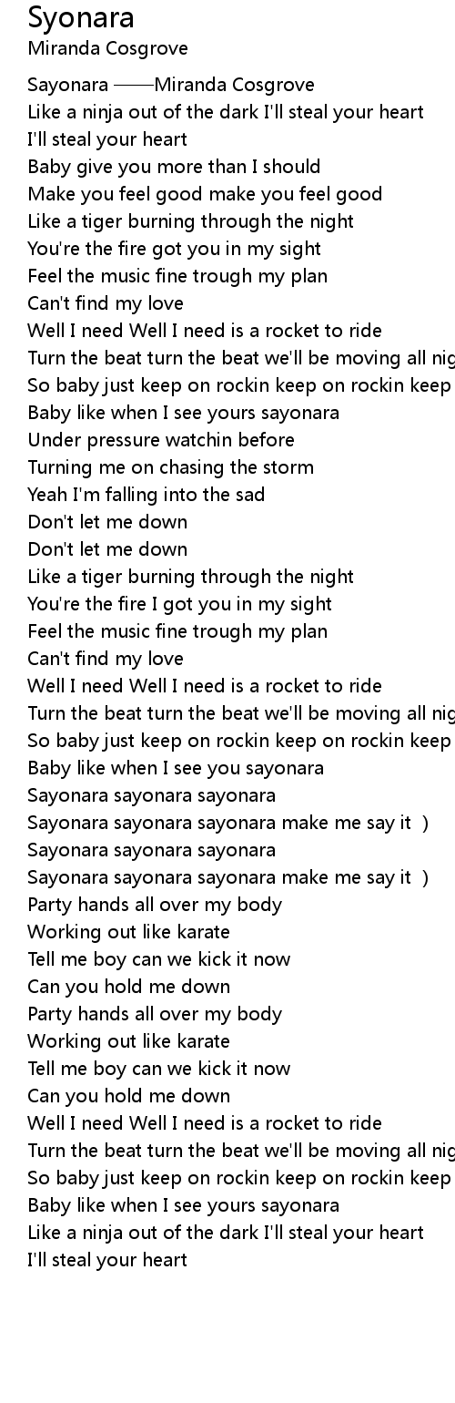 | [00:00.460] | Sayonara ——Miranda Cosgrove |