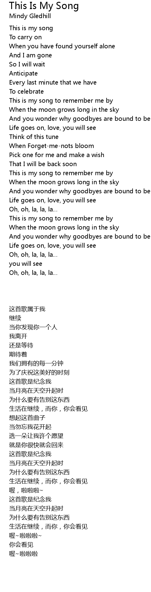 | [00:04.760] | This is my song |