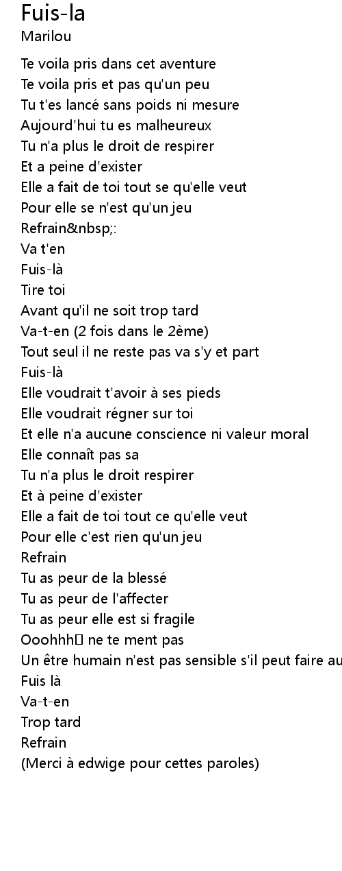 | Merci a edwige pour cettes paroles |