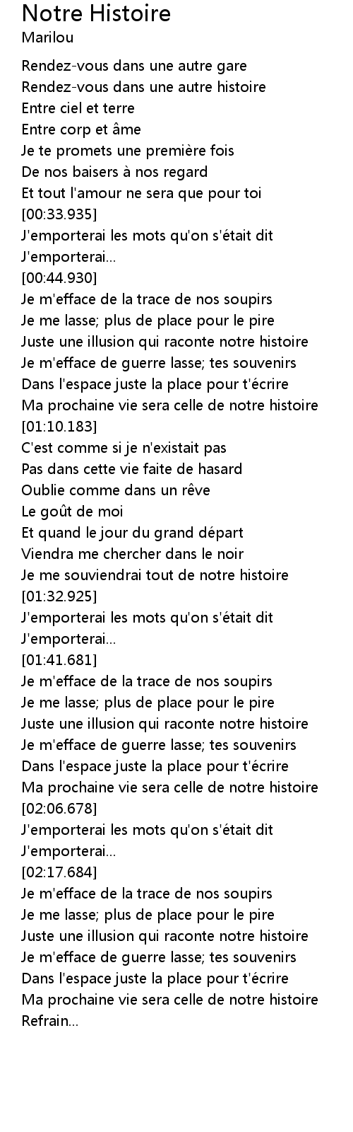 | [02:38.687] | Ma prochaine vie sera celle de notre histoire |